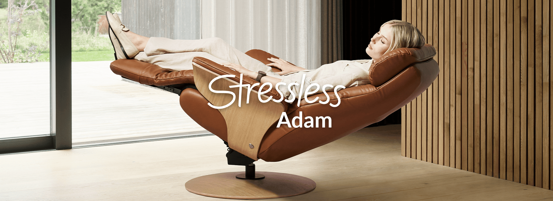 Nya Stressless® Adam är mer än bara en fåtölj – den är designad för att ge dig maximal support när du vill koppla av en stund. Med zero gravity-funktionen kommer din kropp att kännas nästan viktlös och dina ben vara i en position över hjärtnivån. Denna position erbjuder flera hälsofördelar och hjälper både kropp och själ att ladda batterierna.